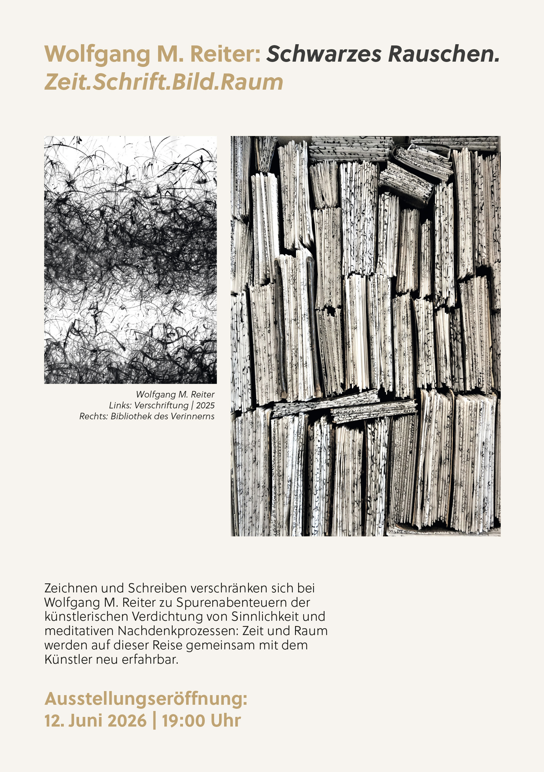 Die Galerie Schloss Puchheim lädt herzlich zur Ausstellungseröffnung „Schwarzes Rauschen. Zeit.Schrift.Bild.Raum“ des Künstlers Wolfgang M. Reiter ein.